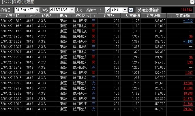 昨日ストップ高のAGSを1100株モチしてたのが買い気配で始まり獲れたのが大きかったです。昨日買って何度かストップ高剥がれたのをガマンしてモチ越して正解でした。後場は相変わらずやる気でません。ほぼ見てるだけでした。モチなし!